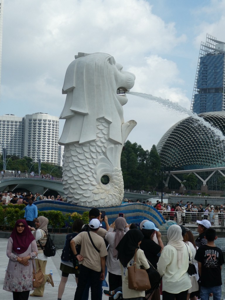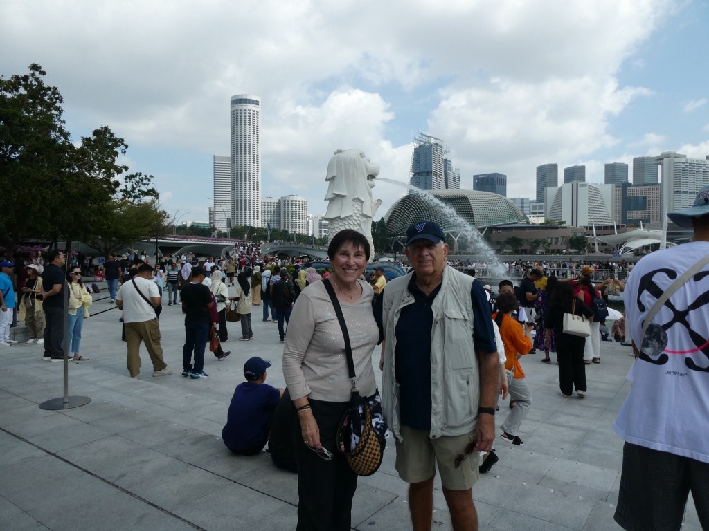 The Merlion was adopted as the mascot in 1971. The Singaporeans eat 6 times a day and stay up late and rise early. Our guide said, they walk fast, eat fast and play fast. We had lunch at fabulous Chinese restaurant. The food was some of the best we have had at a group lunch.