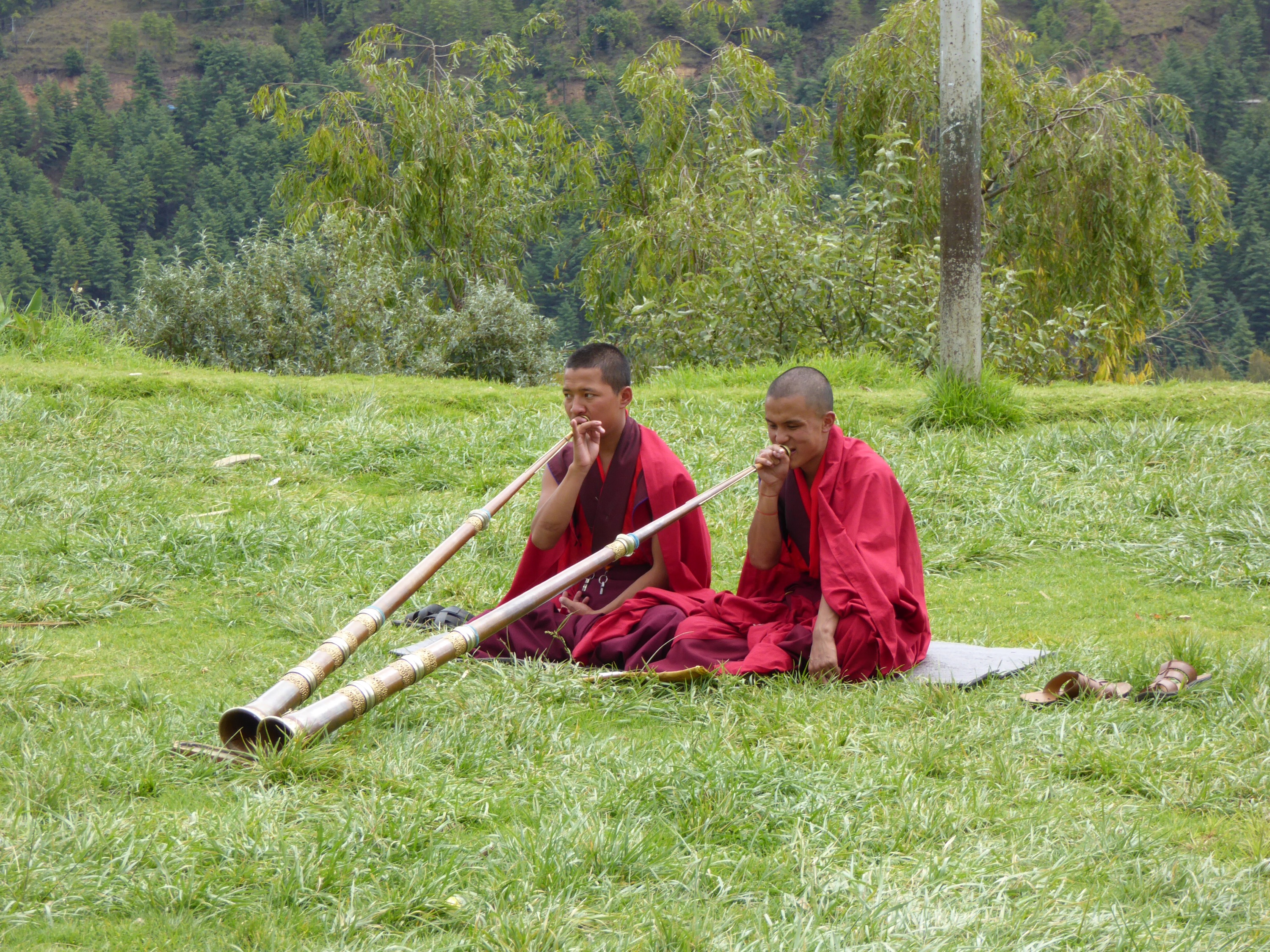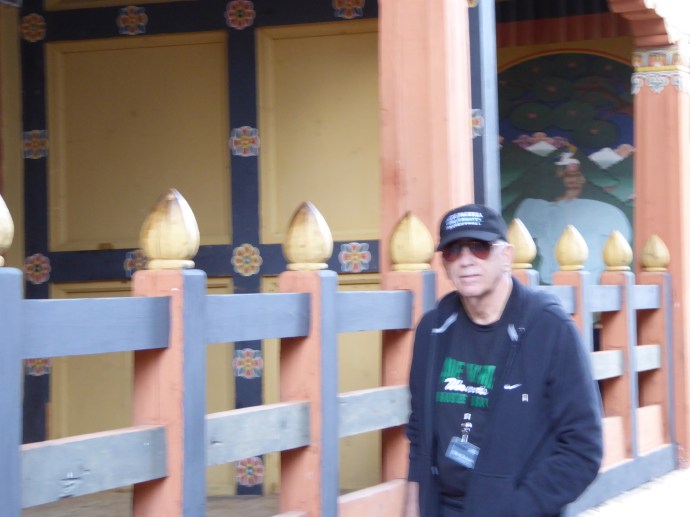 I am sorry for being so wordy, but our unexpected Bhutan experience turned out to be quite interesting. Here is some info about Bhutan. There are approximately 700,000 people in the country. They are predominately Buddhist – 90% or more. The unemployment rate is 40% (again not a typo). They bring in workers from India because they will work for less and the Bhutanese won’t do road building or other construction type work. They have a king, but also have democratic ways with an elected prime minister and 2 houses of elected officials. The former king, who abdicated so his son could lead the country had 4 wives – all sisters – and all drop dead gorgeous. Wife 4 was the one we had the audience with, but is not the mother of the King. They current King has a wife who he married 2 years ago. Education is free and mandatory up through grade 8. They go to school 5.5 days a week. The bright students will be encouraged to continue. The government will pay for college in foreign countries, but you have to return to Bhutan for 5 years or you have to repay the cost of the education you received. The main language is English with everyone also speaking the national language (not sure what the proper name for it is). The national dress is worn by the people during business hours. Men wear the goh – not sure of the name for the women’s dress. You can not enter any religious site if your arms or knees are exposed. The government makes sure that everyone has housing. Cows and dogs run wild everywhere. Bob said that a dog ran into the basketball game!