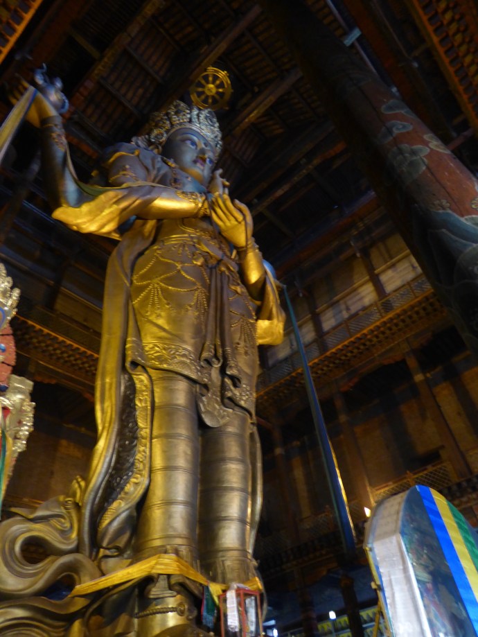 When we left the hotel on Wednesday, June 7 we headed to the Gandan Monastery.  We had a private blessing by three monks in a ger.  We then walked a short way to the Janraisig Temple (Buddhist) to see a giant Buddha inlaid with over 2,000 precious stones.  The building and the Buddha were quite impressive.