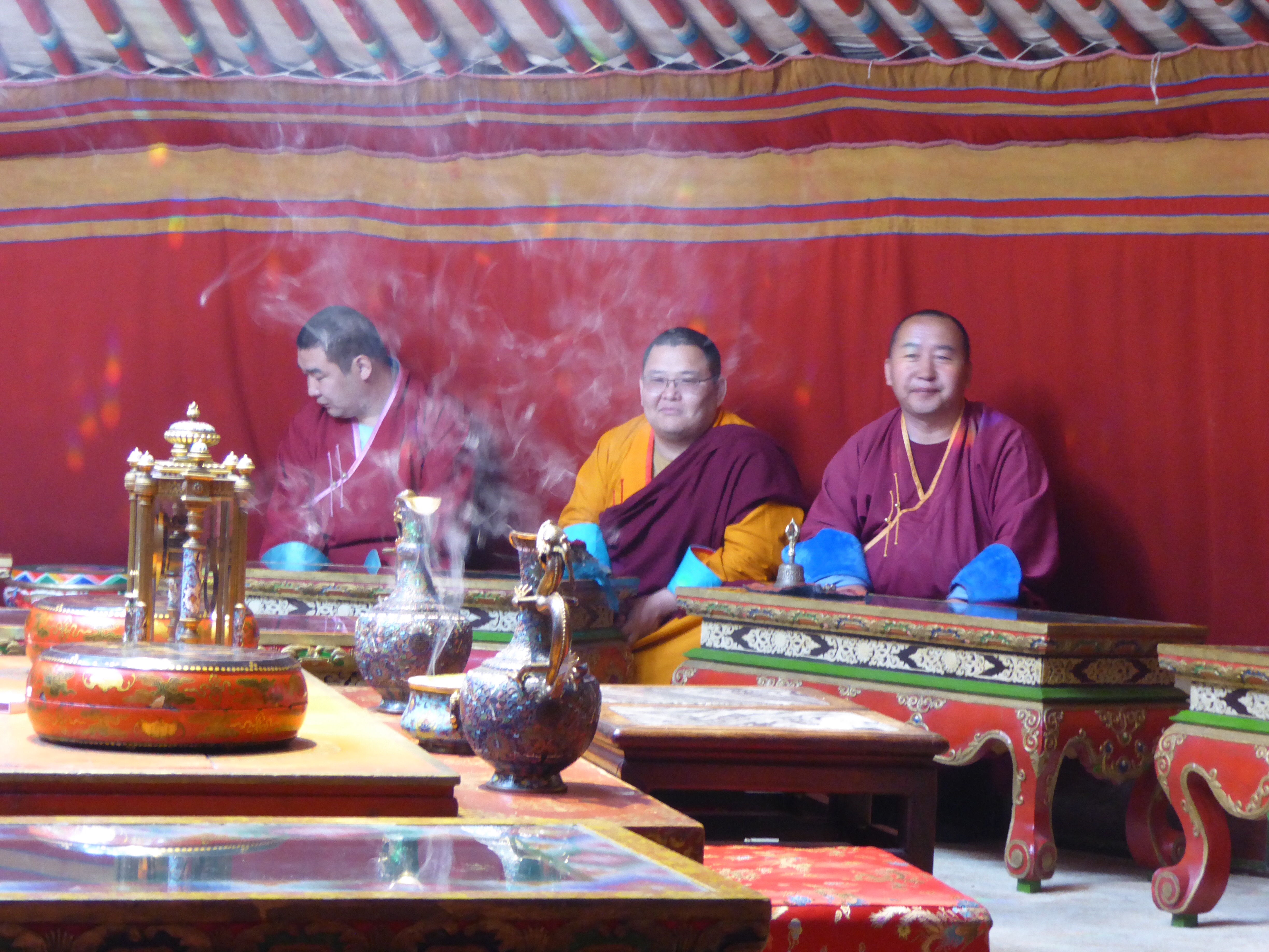 When we left the hotel on Wednesday, June 7 we headed to the Gandan Monastery.  We had a private blessing by three monks in a ger.  We then walked a short way to the Janraisig Temple (Buddhist) to see a giant Buddha inlaid with over 2,000 precious stones.  The building and the Buddha were quite impressive.