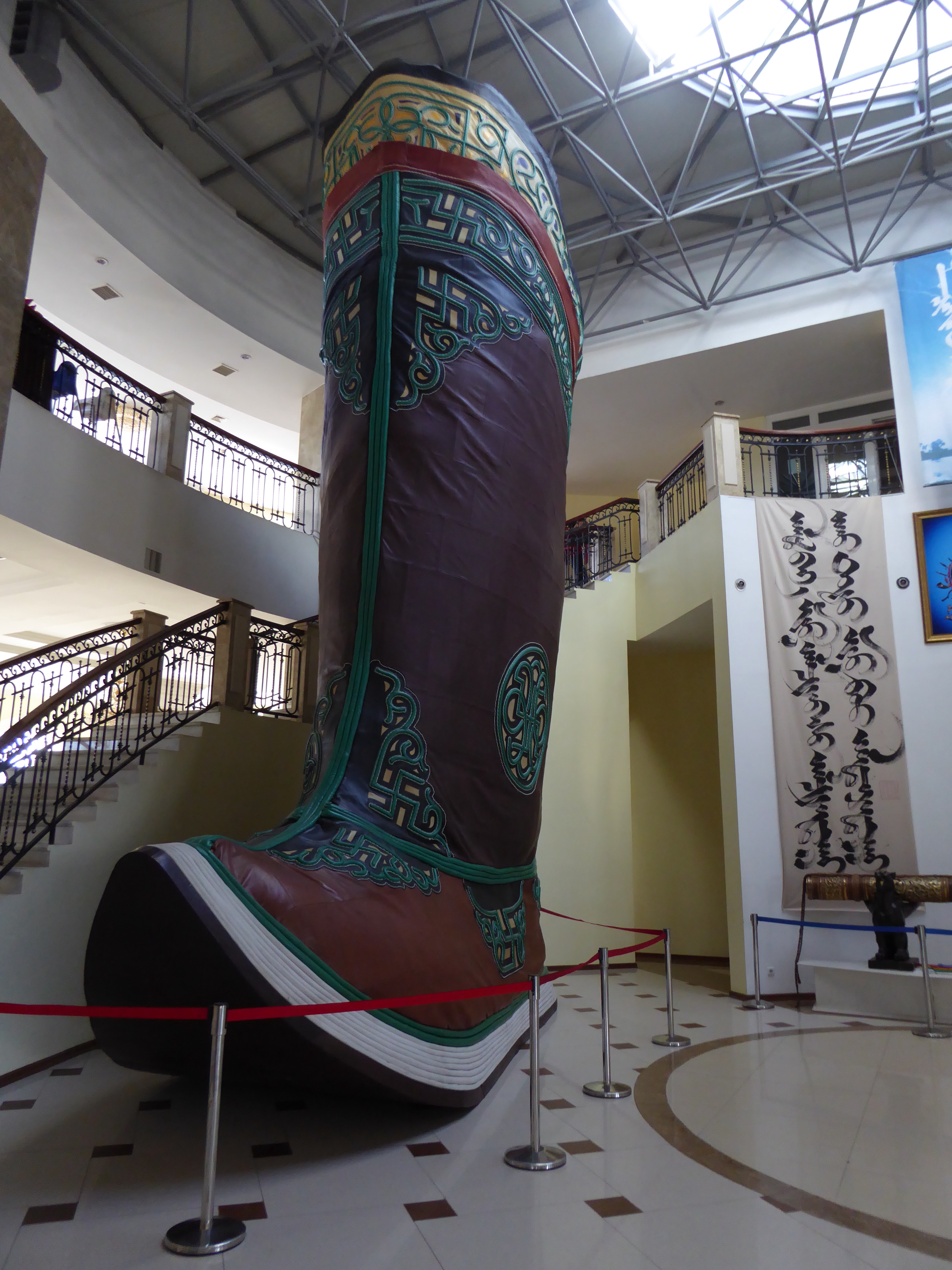 Our next stop was at the National History Museum.  We saw some amazing artifacts and our guide gave us a lot of information about early Mongolia and Genghis Khan.  His empire stretched from the Pacific Ocean to the Bkack Sea.  He was a social innovator, great general, outlawed slavery and bride kidnapping, had sophisticated networks for communication, respected the religions of the lands he conquered and because of the Mongolian horse was able to move quickly through the land.