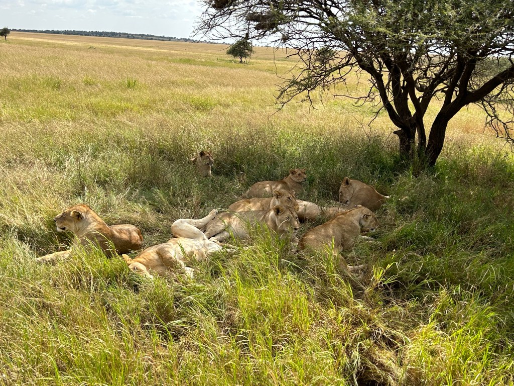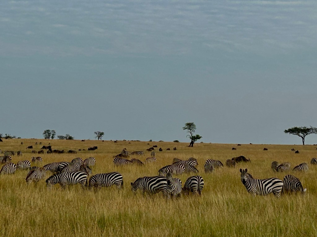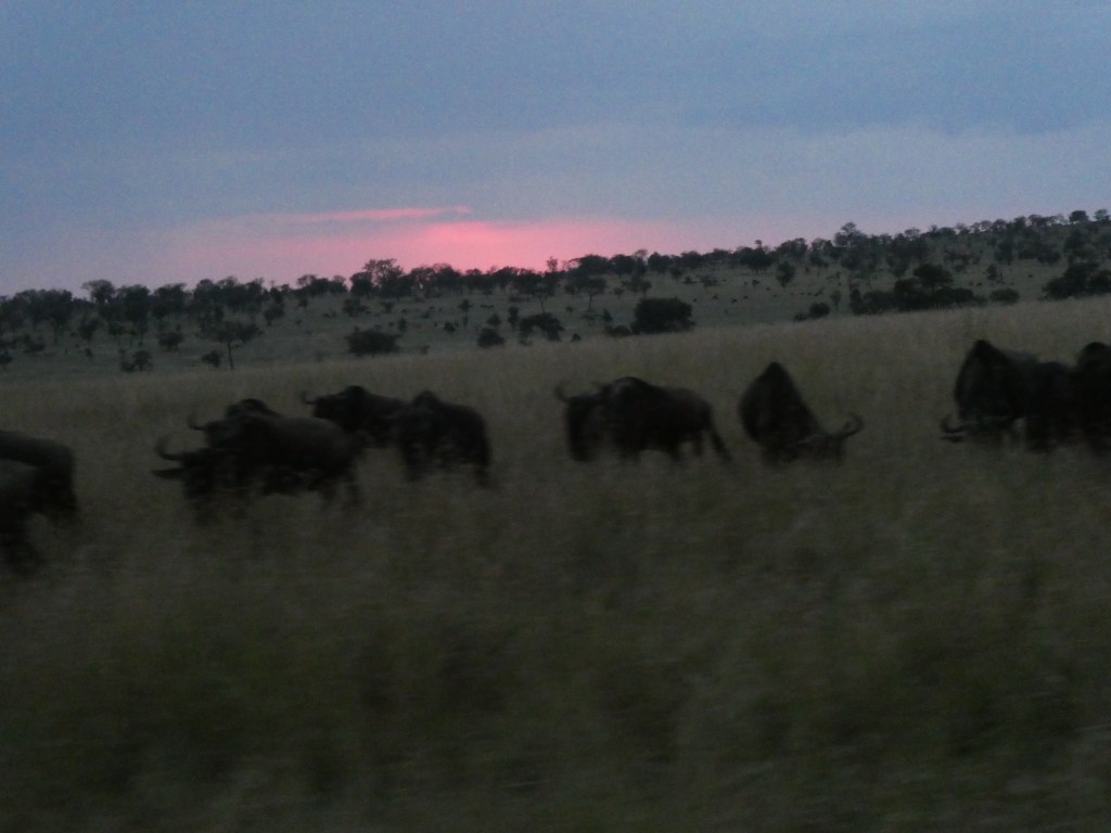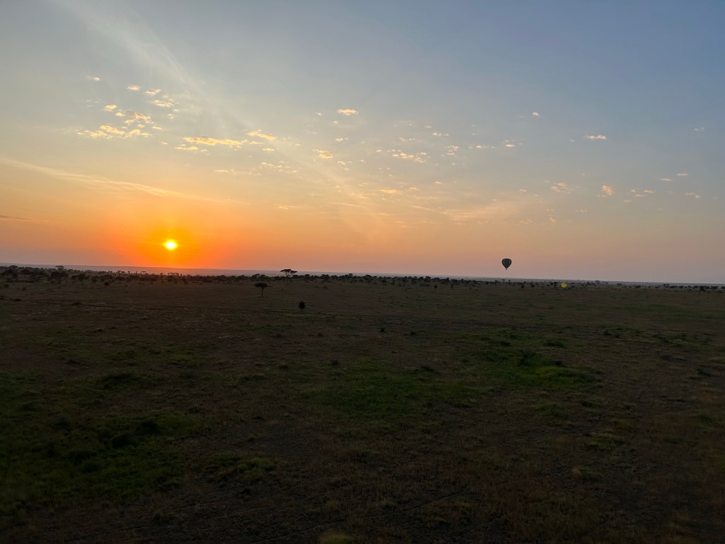 What a fantastic morning for a hot air balloon flight over the Serengeti. We were the second balloon to depart this morning, launching to the song and dance of our fantastic driver guides and crew, with a gorgeous Sunrise to our rear. We stayed low for the first 35 minutes of the flight, immediately passing a small group of Topis below and a few small herds of Zebras on both sides. There were lots of animals around, including a pair of elusive Eland, a small group of Waterbucks and lots of Thompsonâs Gazelles and Impalas. As we passed by the New Camp, we began our climb, only to quickly abort as we noticed a huge herd of Buffalos ahead and to the South. Up we went for a little âleftâ, and then down again for the ârightâ at ground level. Thankfully, our steering technique worked perfectly, and we floated silently over the middle of the herd, the heads of hundreds of the massive creatures looking up as we drifted silently by. A supremely unique view.