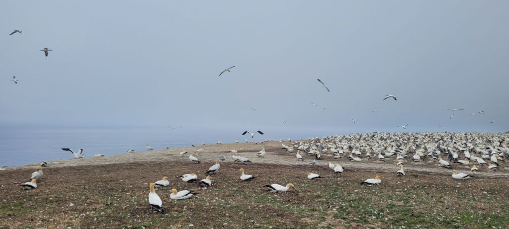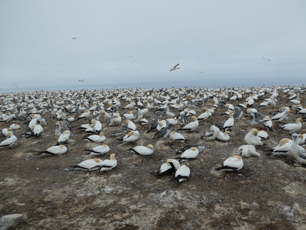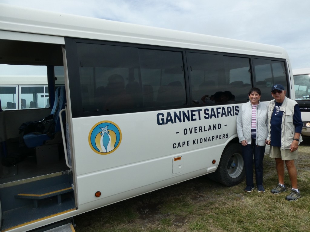 Napier is a city on Hawke’s Bay on the eastern side of the north island of New Zealand. The entire city was rebuilt in the Art Deco style following an earthquake in 1931. These buildings are the best collection of Art Deco buildings on the planet. Our guide, Jan, wanted to know if there were any people from Miami (should have asked about Miami Beach) where there is a very large collection of Art Deco buildings. The area is a big wine producing area. Our tour was to see the world’s largest colony of gannets – a sleek, White Sea bird known for its diving fish catching technique.
