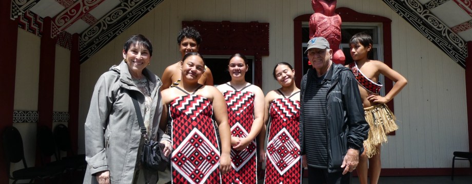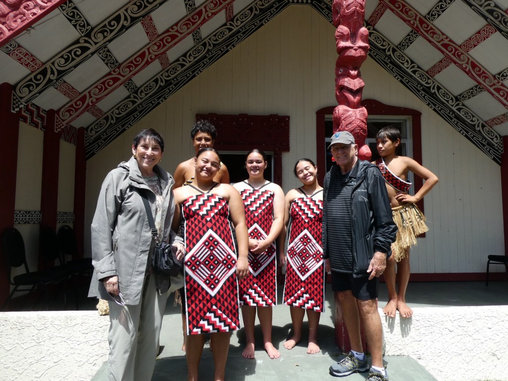The three purposes in the Māori culture are: family, connection to the land and respect. When we arrived at the Māori meeting place, the women were the first to enter the compound. Then the men entered, but when we were invited to sit on benches to be welcomed the men sat in the front. One of the men in our group was named our “leader”. As we entered there were 5 young people singing. Once seated their leader welcomed us in Māori, which included his naming the 26 generations of his family that came before. Then our leader was presented with a branch and he said something as a welcome in return. Then he was given a traditional welcome which had him “bumping” noses with all of the welcome committee. Traditionally everyone would do the nose bump thing but because we were there to learn it was just our representative who did the traditional welcome. It is thought that the Māori may have come from Egypt and possibly are the lost tribe of Israel. The first peoples who came were from around Polynesia and it is thought it happened about 10,000 years ago. The Polynesian triangle is New Zealand, Hawaii and Easter Island.
