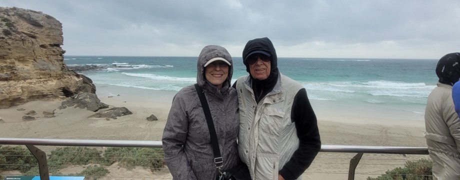 The other purpose of our excursion was to go to Seal Bay, to see the sea lions. Our weather had been overcast most of the day. When we arrived at Seal Bay it started pouring rain. It did not stop us from going down the boardwalk to the beach to see the sea lions. They are the native Australian sea lions. Their fur is a mix of light grey and blond. They have a lot of blubber. Sea lions go out to feed and are gone for about 3 days at a time. We saw some pups who were barking to find their mother who was out feeding. The waters off the coast here have many sharks, as these sea lions are a large part of their diets.