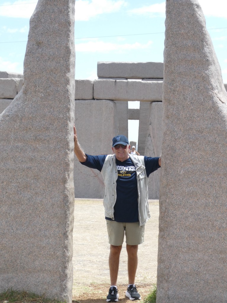 Our last stop was at a full size replica of Stonehenge as it would have looked 4,000 years ago. Someone with lots of money decided to make this replica using local pink granite. It uses 2.5 thousand tons of stone, all the stones are free standing. It took 9 months to erect. It is perfectly positioned so that at the summer solstice, at 4:30 AM the sun comes through the two triangular pieces and lights up the altar piece. Then on the winter solstice the light comes through the tall stones and through the triangular ones at sunset. It was interesting because we could actually walk within the structure while at the real Stonehenge you are kept far away.