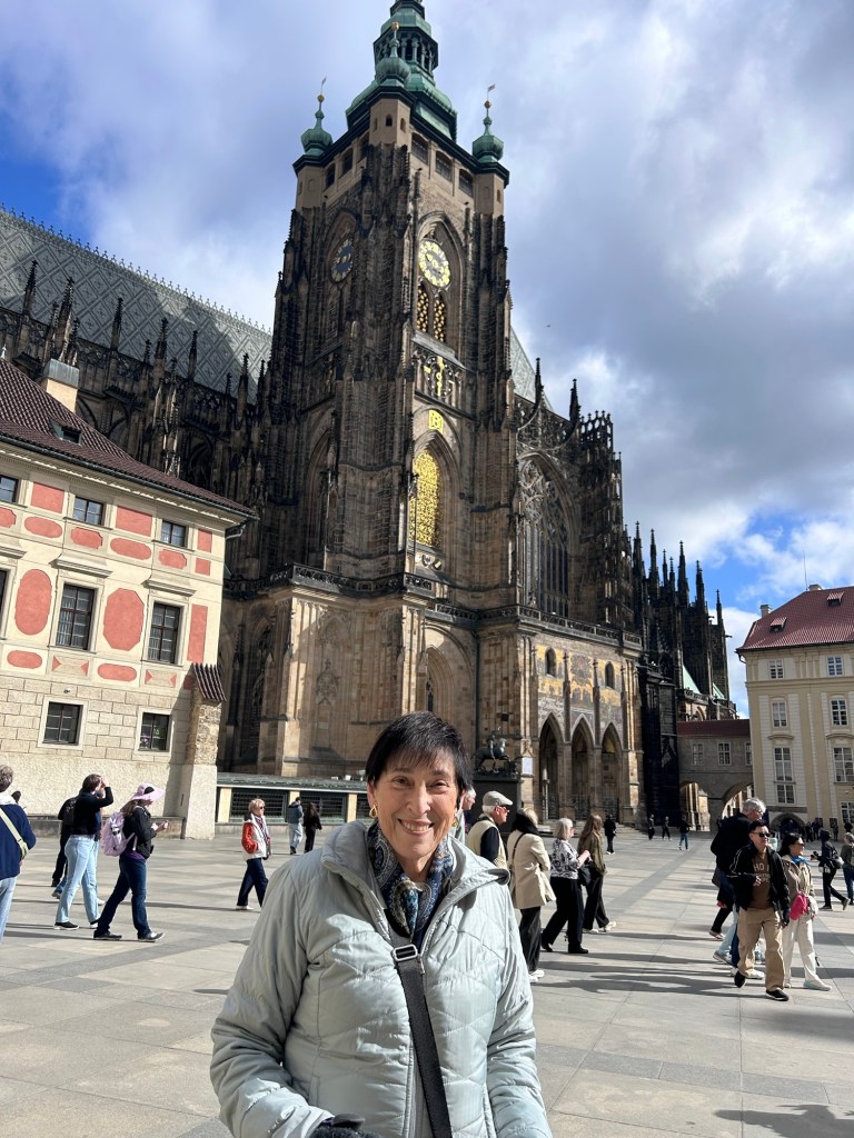 We had a walking tour in the morning provided by our tour company, Viking. We started at the top of the castle hill and toured that area. Prague Castle is the largest in the world, composed of many different buildings and covers 80,000 square meters. Then we walked down the hill stopping to try chocolate at a famous shop. We crossed the Charles Bridge learning its history.